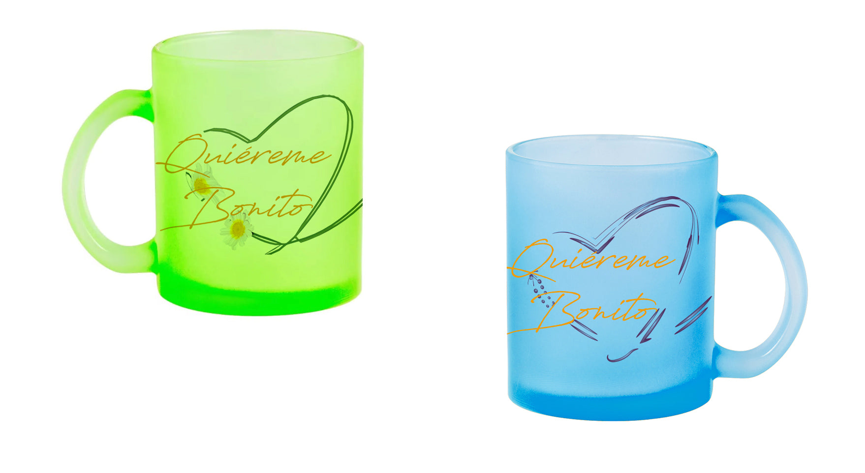 * Originales tazas de cristal azul y cristal verde para decir cosas bonitas.